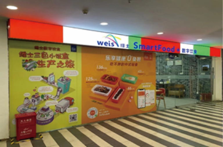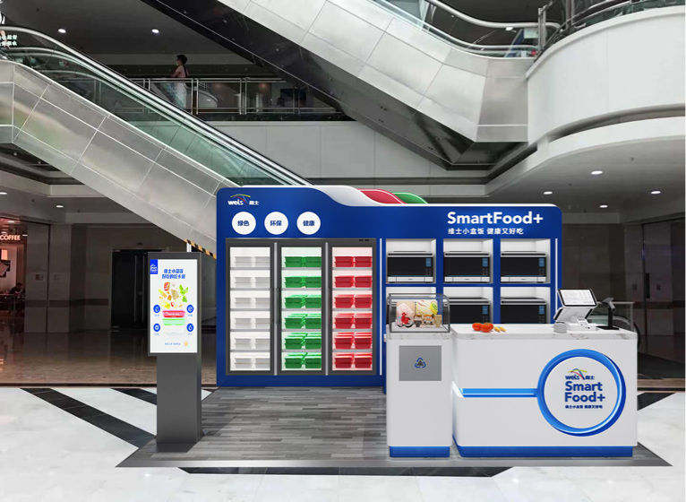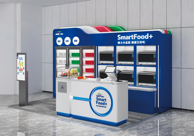 维士小站—即终端网点,由自动分拣加热机器组成,设置在目标用户聚集的商业场所,方便客户自提以及派单配送,高峰期有人值守,非高峰期可自助取餐,形成密集轻量化供给布局。